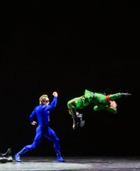 The swastika is especially vivid against the bright green of the SS Officer costume. But in this first big league production of The Amazing Adventures of Kavalier and Clay (it premiered at Indiana University on talented undergrads last fall), the takedown of three Nazi avatars in 20 seconds of kickass by the eponymous characters’ Jewish paragon__the Escapist__is epic.